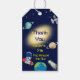 Mit diesen lustigen Geschenkmarken zum Abschluss des Weltraum-Geburtstags! Mit einem dunkelblauen Sternenhintergrund, leuchtendem Galaxienzentrum, farbenfrohen Planeten, der Erde, einem Schießmeteorit und einem Astronauten, der auf einem Raketenschiff fährt, fügen diese Tags Gastgeschenken, Leckereien- oder Geschenkboxen die perfekte kosmische Touch hinzu. Personalisieren Sie Ihre persönlichen Daten mit dem Namen und Alter Ihres Kindes. Ein unterhaltsames und einzigartiges Detail, das den Astronauten, das Raketenschiff und das Galaxieabenteuer zum Geburtstagsthema Krawatte. Koordiniert mit passenden Einladungen, Dankeschön-Karten, Tellern, Servietten, Aufklebern, Plakaten, Ballons und mehr aus unserer Weltraum-Party-Kollektion!