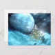 Weihnachten auf einem anderen Planeten. Weltraum oder alien. Schnee bedeckte Weihnachtsbaum auf einer schneebedeckten Umwelt mit einem großen Planeten oder ein Mond, die oben auftauchen und ein kleinerer beringter Planet im Hintergrund. Total sein konnten die uninhabited Bereiche von Erde oder von alieneinstellung. Scifi lockert ungewöhnliche Weihnachtsfeiertagspostkarte auf