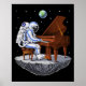 Das Design dieses Pianisten umfasst einen Raumastronaut, der ein Klavier spielt.
