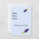 Eine helle Raumrakete in blau, rot und grün, die zum Mond strahlt. Blauer Hintergrund mit Sternenhimmel. Passen Sie Ihre Geburtstagsinformationen Ihren Kindern nach Belieben an.