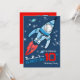 Weltraumraketen Kinder zum 10. Geburtstag - blaue Einladung