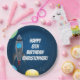 Feiern Sie den Geburtstag oder besondere Anlass des Jungen mit diesem coolen Raumschiff im Weltraum. Dunkelblauer Himmel mit Sternen und farbenfrohen Planeten und eine silberne Rakete, die durch den Himmel schießt. Farblich und hell. CustomInvitesOnline.com