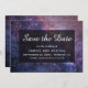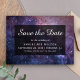 Elegante Save the Date Karte mit einem wunderschönen Galaxiehintergrund mit moderner Typografie.