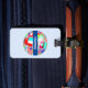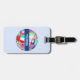 Weltreise und Flaggen auf dem hellblauen Gepäcktag. Text bereit, um personalisiert zu sein.