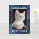 Lass ihr, dass sie mit dieser lustigen Geburtstagskarte die "World's Best Cat Mama" ist. Personalisieren Sie diese niedliche Karte mit dem Foto Ihrer wertvollen Katze im schwarz-grauem matten Rahmen mit Pfotendrucken über einem Hintergrund im Weltraum. Das Innere lautet "Happy Birthday! (mein Essen ist leer)', personalisieren Sie das Schließen mit dem Namen Ihrer Katze.