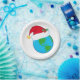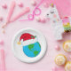 Ein Globus mit einem Weihnachtsmut darauf. Dieses Design wirkt auf diesen Paper-Tellern sehr effektiv