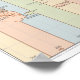 Dieses Design verfügt über eine Weltkarte von öffentlichem Besitz mit den Standardzeitzonen für jede Region, die farbkodiert sind. Es werden vierundzwanzig Zeitzonen angezeigt, wobei auch nicht standardmäßige Halbstundenzonen aufgelistet sind. Die Karte zeigt alle wichtigen Länder der Welt: Sie zeigt die Kontinente Asiens, Afrikas, Nordamerikas, Südamerikas, Europas und Australiens. Die Zeitzone der Universellen Zeit Koordiniert (UTC) wird in der Kartenmitte angezeigt, während frühere Zeitzonen zu den verlassen Zeitzonen und spätere Zeitzonen rechts angezeigt werden.