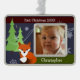Ein entzückender kleiner Fuchsentwurf mit Raum, ein Foto und einen Namen zu personifizieren und zu addieren, um des Babys ersten oder irgendein Weihnachten zu gedenken. Ursprünglicher Entwurf durch die Menagerie der Nachteule, 2015.