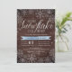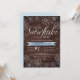 Brrr! Eisige schicke Einladungen für Winter-Babypartys kennzeichnen eine weiße Schneeflockegrenze auf einem rustikalen hölzernen Plankenhintergrund mit hellblauen Aquarellakzenten. "Eine kleine Schneeflocke ist auf der Weise" erscheint an der Spitze in der schicken weißen Kalligraphieskriptbeschriftung. Personifizieren Sie mit Ihren Babyduschendetails unter der Anwendung der Schablonenfelder.