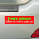 Autoaufkleber mit einer Nachricht Weniger Stück bedeutet mehr Friedensmotto, geschrieben durch Rallph w Heftklammern für Weisheitsworte http://zazzle.com/writepeople
