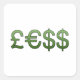 weniger Geldzeichen Pfund, Euro US-Dollar Quadratischer Aufkleber