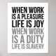 Wenn Arbeit ein angenehmes Leben ist, ist Freude Poster