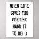 Wenn das Leben gibt dir Parfüm Hand es mir! :) lustiges Zitat-Poster