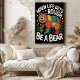 Diese lebendige Abbildung zeigt einen fröhlichen, farbigen Bären mit Krawatte und Honigtopf. Der Text "Wenn das Leben regnet, sei ein Bär" umgibt den Bären und schafft ein aufregendes und motivierend Thema. Das farbenprächtige und dynamische Design vereint ein Gefühl von Widerstandskraft und Positivität, das perfekt ist, um eine Botschaft der Stärke und Ausdauer angesichts von Herausforderungen zu vermitteln.