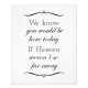 Dieses schöne Gedenkstück wird eine besondere Art sein, die für immer in Ihren Herzen sind zu ehren. Das Design enthält den Wortlaut "Wir wissen, dass du heute hier wärst, wenn der Himmel nicht so weit weg wäre" in einer Kombination aus schwarzem Wirbel und Schriftart. Schwarze Akzente oben und unten ergänzen das Schild. Dies ist perfekt, um auf einem Stuhl bei Ihrer Hochzeitsfeier zu platzieren, um jemandem etwas Besonderes zu ehren.