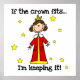 Das Humorvolle königliche Strichmännchen-Design enthält ein Strichmännchen und einen Text der Königin, in dem steht: "Wenn die Krone passt, behalt ich sie!". Sie bekommen einen Kick aus diesen niedlichen Queen Strichmännchen T - Shirt, Tasse, Mousepads, Karten und anderen Gegenständen.