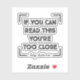 Wenn du das lesen kannst, bist du zu Nah. Aufkleber