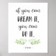 Dieses stilvolle Poster sagt: "Wenn du es träumst, kannst du es schaffen" in der modernen schwarzen Typografie, mit trendigen, wasserfarbengrünen botanischen Blätter. Es gibt auch einen Platz, um Ihren Namen hinzuzufügen oder den Namen komplett zu löschen. Wir haben einige Kunst aus LABFreations benutzt.
