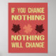 Wenn man nichts ändert, ändert sich nichts - motivierend Zitat, rote Typografie mit Blätter.