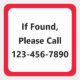 Wenn gefunden, rufen Sie bitte die Telefonnummer r Quadratischer Aufkleber