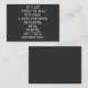 Wenn ich erstens sage, laufen Sie weg, Visitenkarte