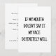 Dies ist eine lustige Sarkasmus-Jubiläumskarte für Ehemann Ehefrau oder Freundin Freund. Diese Karte verfügt über einen benutzerdefinierten Namen und Text auf der Vorder- und Rückseite. Schreiben Sie Ihre persönliche Nachricht und Ihren Namen auf der Rückseite. Klicken Sie auf die Schaltfläche Personalize, um Ihre Nachricht hinzuzufügen. Beste lustige Karte für Mama Leben.