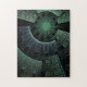 Puzzle-Design aus "If Six was Nine", einem Apophysis-Fraktal von Susan Wallace. Copyright © 2008, Susan Wallace. Ein kreisförmiges Labyrinthmuster in Grün- und Blautönen, das geometrische Formen in einem komplexen futuristischen Design kombiniert. Dieses komplizierte Fraktal macht ein wunderbar hinterhältiges Puzzle. Ein sich wiederholendes Muster und eine subtile Textur sorgen für stundenlang anspruchsvolle Unterhaltung für alle Altersgruppen.