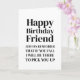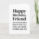 Feiern Sie den Geburtstag Ihres Freundes mit einem Lachen. Diese lustige Karte zeichnet sich durch ein schlankes, schwarz-weißes Design mit auffallender Typografie aus.