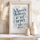 Inspirier Glauben und Hoffnung mit diesem eleganten Kunstdruck mit dem mächtigen Vers von John 11:26. Das wunderschön handgeschriebene Zitat in Blau- und Goldtönen, geschmückt mit zarten Blumenakzenten, schafft ein ruhiges und aufregendes Design. Ideal, um eine Touch spiritueller Inspiration zu Ihrem Zuhause, Büro oder Gebetsraum hinzuzufügen.
