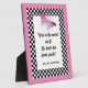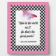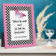 Weiße digitale Kunst mit rosa Hintergrund, schwarz-weißem Schachbrettrahmen, Aquarellpinken Schmetterling und mittleren Zitat aus der Alice im Wunderland, die lautet: "Wer in der Welt bin ich? Das ist das große Rätsel."