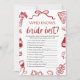 🍕 Das ist Amore - Wer kennt die Braut am besten? Fügen Sie Ihrem Brautparty eine lustige, skurrile Touch mit dieser italienisch inspiriert Spielkarte "Wer kennt das Beste der Braut?" hinzu! Mit handgezeichnet Pizzaslices, rustikalem Rotgingham und spielerischem italienischen Charme ist es die perfekte Ergänzung zu Nudeln, Pizza oder Weinbergen. Die Gäste werden die Lieblingssachen der Braut und die lustigen Fakten schätzen - ein süßer Sake und Eisbrecher in einem! 💍 Matches die komplette Kollektion von That's Amore bridal 💌 Perfekt für italienische, rustikale, Wein-und Pizza-Brautparty 🎨 wunderschön gestaltet mit Aquarelldetails Ideal für Coquette-Brautparty, Weinbrunches oder jede Veranstaltung, die la dolce vita feiert!