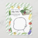 "Auf dem Weg ist ein lokal erwachsenes Baby". Feiern Sie mit diesem Baby-Dusche-Party zum Thema Wasserfarbe! Aquarellkuschel, Zwiebeln, Auberginen, Zucchini, gelbe und rote Tomaten, Rettich, Karotten, heißer Paprika, süß-gelber Paprika, Erbsen und Kohl, Brokkoli und Rüben auf einem Schneidebrett. Bio Wasserfarbenernte.