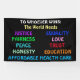 Wer gewinnt, der braucht Gerechtigkeit, Frieden, Fairness, Gleichheit, bezahlbare Gesundheitsversorgung im Freien.