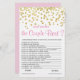 Wer kennt das beste Pink Gold Bridal Game - hier ist eines der gemeinsamen Brautparty-Spiele um seine Gäste zu unterhalten. Da es als Vorlage vorbereitet wird, können Sie es nach Ihren Wünschen/Bedürfnissen personalisieren. FÜR WEITERE SPIELE MIT DEM GLEICHEN DESIGN schreiben Sie BURG-1 in der Suchbox meines Shops. Danke, dass du meinen Laden besucht hast! Für den Fall, dass Sie etwas über Design brauchen, können Sie mich kontaktieren: szdesigns2021@gmail.com