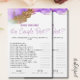 Die "Wer kennt das beste Paar?" Das lila Brautparty Game ist eine unterhaltsame und interaktive Art, Braut und Bräutigam zu feiern und gleichzeitig die Gäste zu begeistern. Diese lila Spielkarte wurde mit einem stilvollen Thema gestaltet und bietet eine Reihe von leichteren Fragen über das Paar, die das Lachen, die Erinnerungen und den freundlichen Wettbewerb fördern. Ideal für Brautpartys, Verlobungsfeiern oder Paare, bietet es eine persönliche Touch und hilft den Gästen, sich mit der Liebe, die gefeiert wird, besser vertraut zu machen. Das elegante Design und das spielerische Format machen es zu einem wahren Genuss und gleichzeitig zu einem Massen-Vergnügen.