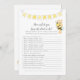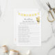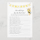 Ein lustiges Spiel für die Babydusche ist das Who is know daddy-to-be?-Spiel. Dieses Spiel enthält oben ein gelbes Banner und einen Teddybär mit einer Biene. Auf der Rückseite ist ein Junge Teddy Bär, der auf einem Honigfass aufbaut und eine Honigbiene mit Vorlagen beobachtet.