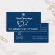 Die moderne Promotional Blue Valentine's Day Geschenkgutschein Card ist Teil der Blue Business Card Designs & Marketing Items Kollektion. Diese Landschaftskarte zeigt weißen Text auf einem blauen Hintergrund mit zwei Herzen. Das Firmenlogo und der Name sind in der obersten Mitte ausgerichtet, unten steht der "$XX Valentine's Day Gift Voucher" Text. Auf der Rückseite der links Seite befindet sich ein "Scan and Arrange!" CTA, QR-Code für eine einfache Terminplanung, Tracking ID: Liebe25, Einladung zum "Follow" des Social Media Handles und Valentinens Hashtag. Rechts die Kontaktdaten. Eine untere Trennlinie hebt die Begriffe hervor: "Diese Karte für $XX bei Ihrem nächsten Besuch | Kein Barwert | abgelaufen XX.XX.20XX." Die Gutscheinkarte ist ein hervorragendes Marketing-Tool für alle kleinen Unternehmen, die einen Liniendienst anbieten, Backstein und Mörtel, Kunsthandwerk oder Café. Weitere Informationen zum Branding finden Sie unter www.KBMD3signs.com. Für Hilfe kontaktieren Sie uns unter info@KBMD3signs.com.