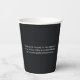 Diese eleganten Logokombinationen sind eine elegante und minimalistische Wahl für Firmenveranstaltungen. Diese Papiertassen sind in schwarzem Design gehalten und zeigen auf der Vorderseite Ihr Logo, Ihren Markennamen, Ihren Slogan und Ihre Website sowie auf der Rückseite einen eigenen Text. Diese Einwegbecher mit Markenbezeichnung bieten eine vielseitige Leinwand für Ihr individuelles Branding. Pair sie mit unseren Logo-Untersetzer, Bannern und Serviertablette für eine komplette und stilvolle Event-Branding-Lösung.