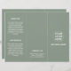 Die Promotion-Trifold-Broschüre in Salbei-Grün mit Logo und individuellem Text. Diese professionell gestaltete Broschüre ist ideal, um das Angebot Ihres Unternehmens elegant und übersichtlich darzustellen und so einen bleibenden Eindruck bei Ihrem Publikum verlassen.