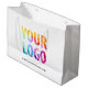 Mit Ihrem Firmenlogo und Geschäftsinformationen personalisieren Sie diese Papiertasche ganz einfach. Werbegeschenktaschen, die mit Ihrem Firmenlogo versehen sind, fügen Ihren Geschenken, Geschenken und Einkaufstaschen eine berufliche Touch hinzu. Design-Tipp: Bringen Sie die Anpassung des Brandings auf die nächste Stufe, indem Sie eine Hintergrundfarbe auswählen, die der Farbe Ihrer Marke entspricht.