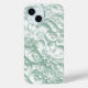 Eine Kollektion von aufwändig gestalteten pastellgrünen, glänzenden Blume und wirbelnden Motiven auf weißem Hintergrund.