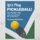 Pickleball Flyer mit "Let's Play Pickleball" und Ihre persönlichen Event-Informationen auf einem Pickleball-Court Hintergrund. Bearbeiten Sie jede Textzeile zu Ihren eigenen Informationen.
