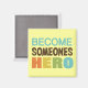 Die Inspirationsbotschaft lautet "Become Someones hero" auf T - Shirt, Taschen, Magneten, Tasten, Karten, Aufklebern, Schlüsselketten, Kissen, Wasserflaschen und vielem mehr. Als der beste Mensch, den man für diejenigen, die nach dir schauen, deine Kinder, deine Schüler, deine jüngeren Geschwister, oder vielleicht versuchen, dein Bestes zu tun und ein Held in den Augen eines Menschen zu sein, den du nicht einmal kennst!