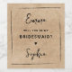 Ein charmantes "Werden Sie meine Brautjungfrau sein?" Weinetikett mit elegantem Drehbuch, Set vor einem Vintagen, bräunlichen Hintergrund. Dieses zeitlose Design fügt eine Touch rustikaler Eleganz hinzu und macht es zum perfekten frag, dass Ihr bester Freund oder Liebster an Ihrem besonderen Tag beiderseits steht. Eine einzigartige und denkwürdige Art zu sagen: "Werden Sie meine Brautjungfrau sein?" Wer könnte Sprichwort widerstehen, einem so herzlichen Vorschlag zuzustimmen?