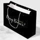"Werden Sie Träger sein?" Moderne Geschenktüte mit dem Titel "Will You Be My Ring Bearer?" in weißem, modernem Script-Schriftart-Stil auf schwarzem Hintergrund.