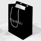 "Werden Sie Träger sein?" Moderne Geschenktüte mit dem Titel "Will You Be My Ring Bearer?" in weißem, modernem Script-Schriftart-Stil auf schwarzem Hintergrund.