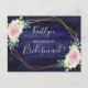 Diese super niedliche Einladung Postkarte ist der perfekte Weg, um fragen "Werden Sie meine Brautjungfrau?". Das Design zeichnet sich durch einen geometrischen Rahmen aus goldfarbener Folie mit trendiger Typografie und blumigen Aquarellblüten auf einem marineblauen Holzhintergrund aus. Diese Postkarten sind einfach zu anpassen und können verwendet werden, um Ihre Lieben fragen, um Ihre Brautjungfrau, Magd oder Ehrengäste, Blume Mädchen, etc. zu sein.