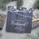 Personalisiert wirst du meine Brautmeisterin sein | TRAUZEUGIN | Blume Mädchen bearbeitbare Textkarte mit rustikalen weißen Schneeflocken und schimmernder Hängeleuchte auf dunkelblau grauem Holzhintergrund. Ideal für Ihren Winter elegante rustikale Landschaft | Wunderland thematisierte Hochzeit.