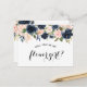 Frag deinen Freunden und deiner Familie, an deiner Hochzeit teilzunehmen, mit dieser Blumenkarte "Will You Be My Flower Girl?", auf der Blumenelemente aus Marine und Blau mit weiblicher Kalligraphie-Schrift zu sehen sind. Matching-Elemente sind verfügbar. Brautparty-Vorschlagskarte