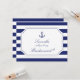 Frag deine Brautjungfrauen mit dieser inspirierten Bridesmaid-Karte an der Küste, die einen klassisch marineblauen Anker mit Seil und einem marineblau-weiß gestreiften Hintergrund aufweist. Personalisieren Sie Ihre Bestellung mit dem Namen Ihrer Brautjungfrau.